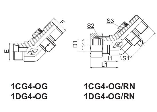 45°弯公制外螺纹24°锥/公制外螺纹可调向柱端ISO 6149-2 45° ELBOW METRIC MALE 24° CONE/METRIC MALE ADJUSTABLE STUD END ISO 6149-2