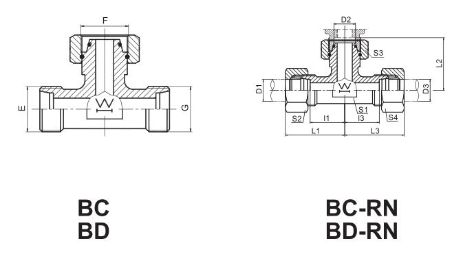 右端内螺纹三通接头 BARREL TEE FITTINGS WITH SWIVEL NUT