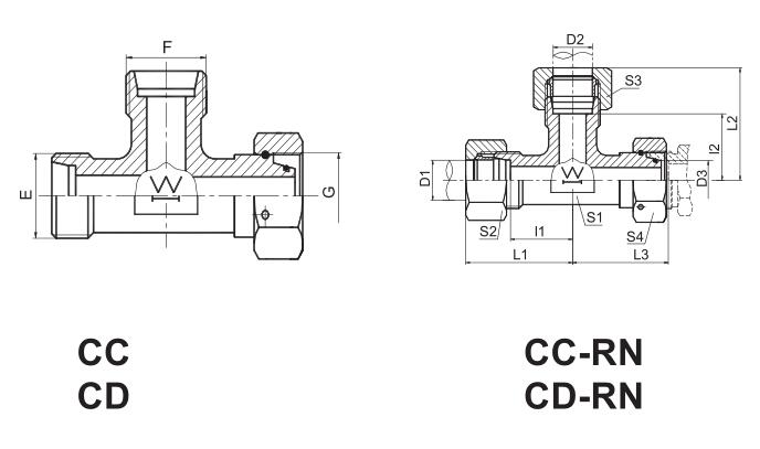 三通公制外螺纹24°锥 /公制外螺纹可调向柱端ISO 6149-2 METRIC MALE 24° CONE / METRIC MALE ADJUSTABLE STUD END ISO 6149-2 RUN TEE